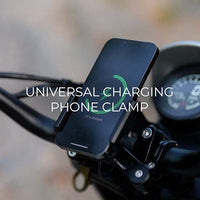 The Universal Charging Phone Clamp also supports wireless charging. Simply supply the inductive charger with power via your motor, your e-bike battery or a powerbank to charge your phone wirelessly. Flat battery on the road? No longer a problem.